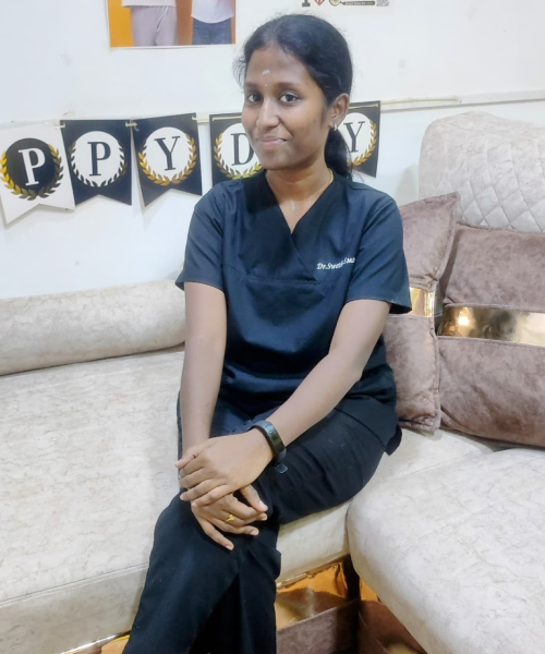 Dr. Swetha specializes in Oral & Maxillofacial Pathology, bringing advanced expertise in diagnosis, treatment planning, and evidence-based care. Her strong academic foundation and research experience ensure precision and accuracy in every clinical decision. With a compassionate approach and a keen eye for detail, she makes pediatric dentistry both gentle and trustworthy. At Toddlers TeethH Pediatric Dentistry, Dr. Swetha blends scientific insight with personalized care, creating a welcoming experience for children and families.